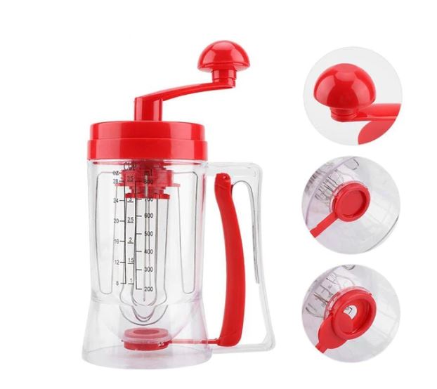 Aparat manual pentru amestecarea aluatului, cu dozator pentru clatite si prajituri