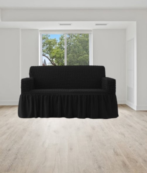Husa pentru canapea 3 locuri – Creponata cu Volane – Negru