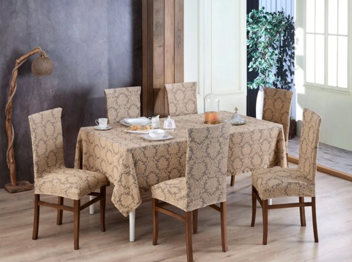 Set 6 Huse Multielastice Jacquard pentru Scaune – Protecție și Stil, Bej