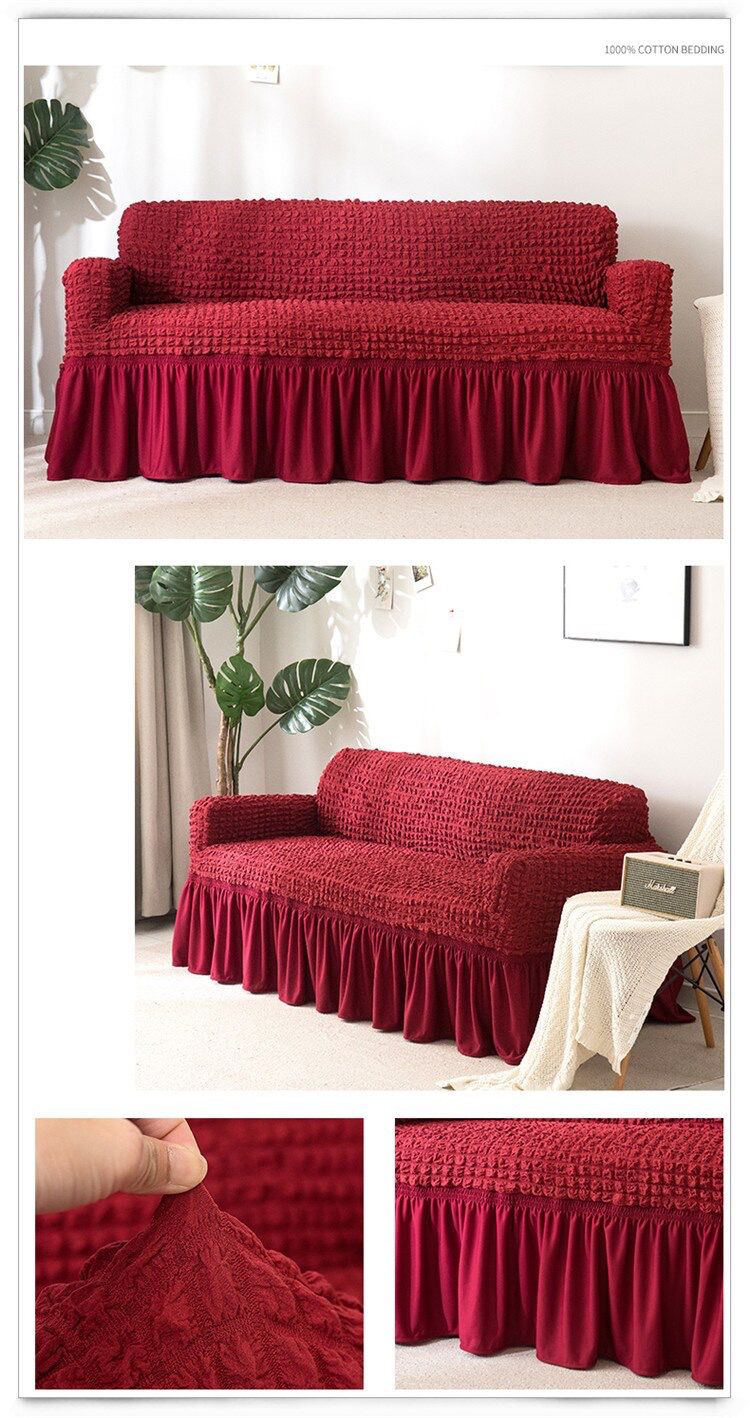 4 recenzii pentru Set Huse Elastice, Canapea 3 Locuri + 2 Fotolii, Creponate, Bordo
